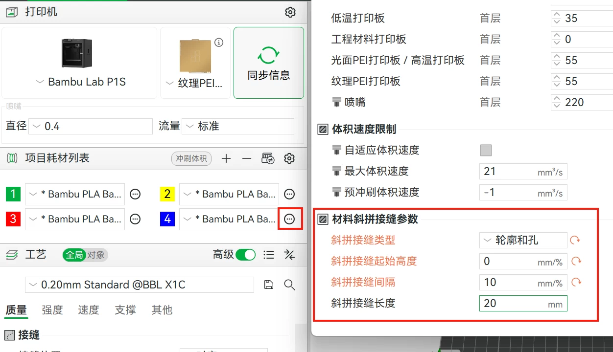 如图所示。如果你不知道如何进入耗材配置文件,点击耗材旁边的图标进入编辑按钮。